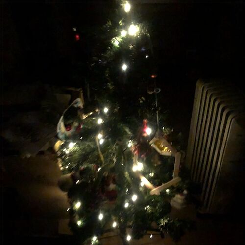 家のツリーのライトは タイマー機能みたいなのがあるみたいで 夜になると勝手にライトアップしてくれてます。 この写真じゃ、なにがなんだかわからないけど(笑) クリスマスはもうすぐ!🎄