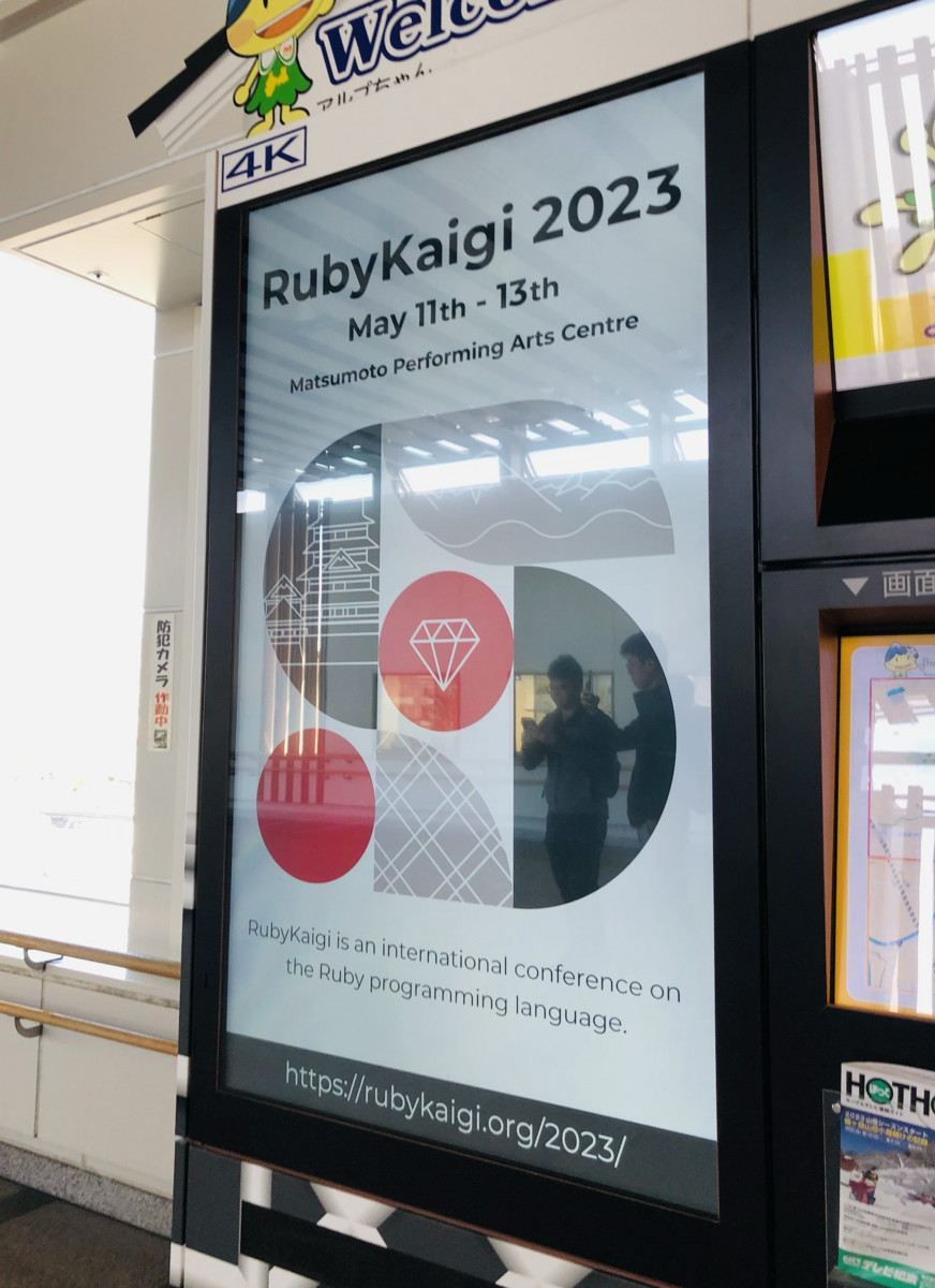 松本駅に着くと、Ruby Kaigi 歓迎などの垂れ幕やデジタルサイネージを見て、いやおうなしに気分がもりあがりました。