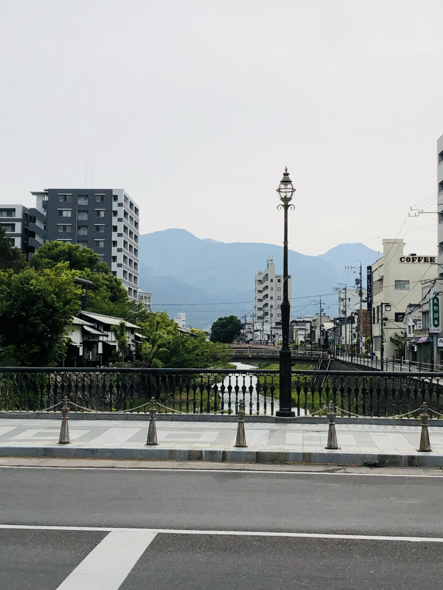 街には川が流れていて、川辺で山を臨む景色もよかったです。